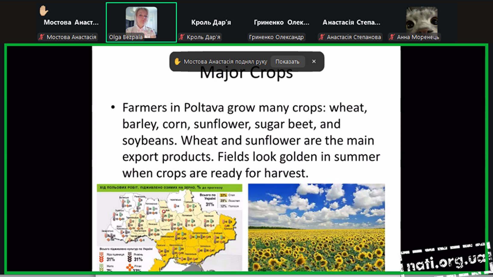 На практичному занятті з англійської мови за професійним спрямуванням студенти першого курсу спеціальності «Агрономія» презентували свої доповіді англійською мовою на тему: «Вирощування сільськогосподарських культур у різних регіонах України».
