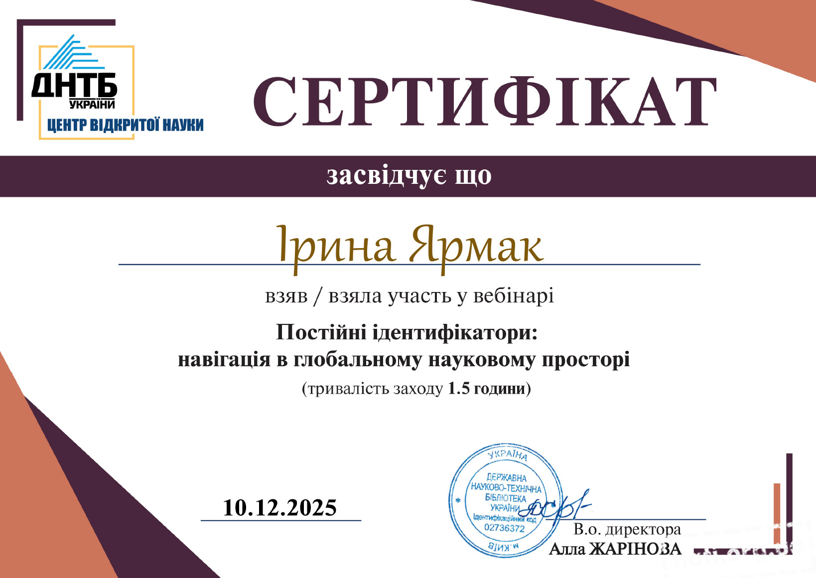 10 грудня 2025 року наші фахівці долучилися до вебінару «Постійні ідентифікатори: навігація в глобальному науковому просторі».