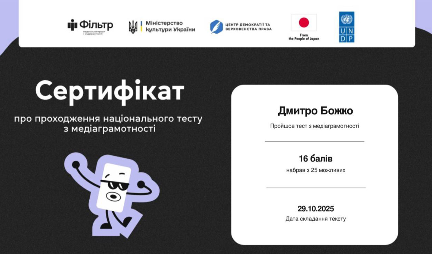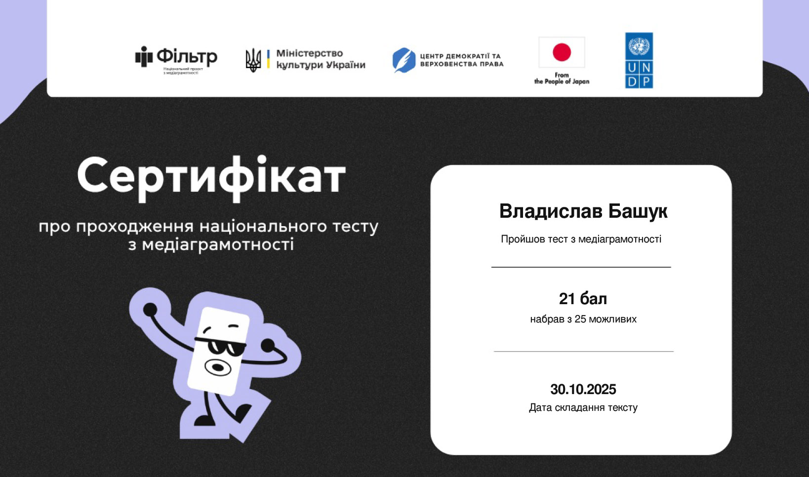 Дякуємо всім, хто знайшов час для проходження тесту та зробив свій внесок у зміцнення інформаційної культури нашої спільноти!