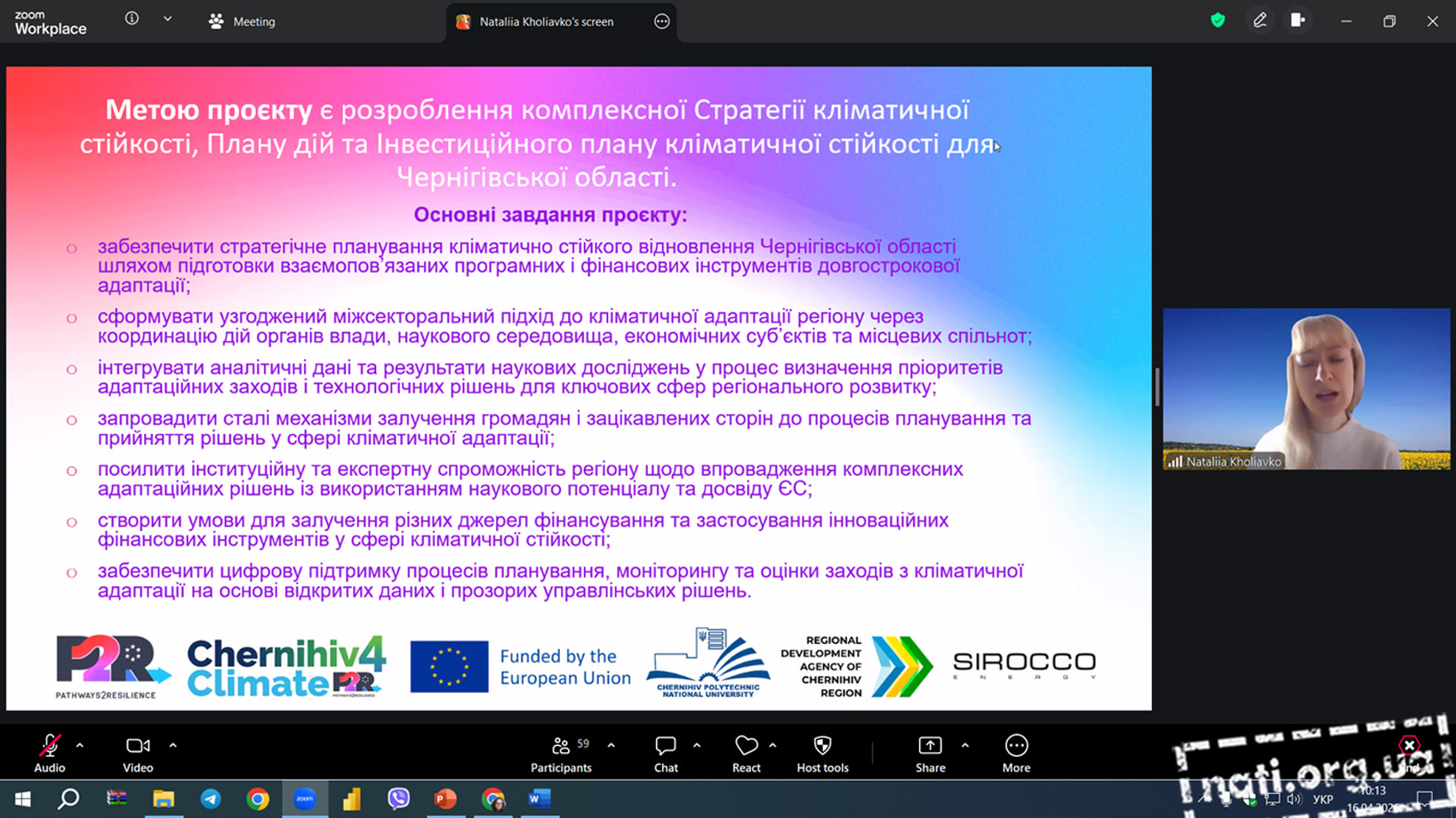 Під час пленарної сесії було представлено доповідь «Адаптація до змін клімату в Україні: роль проєкту P2R», яку презентували професор кафедри фінансів, банківської справи та страхування Національного університету «Чернігівська політехніка» Наталія Холявко та завідувач кафедри економіки, обліку і оподаткування цього ж університету Жанна Дерій.