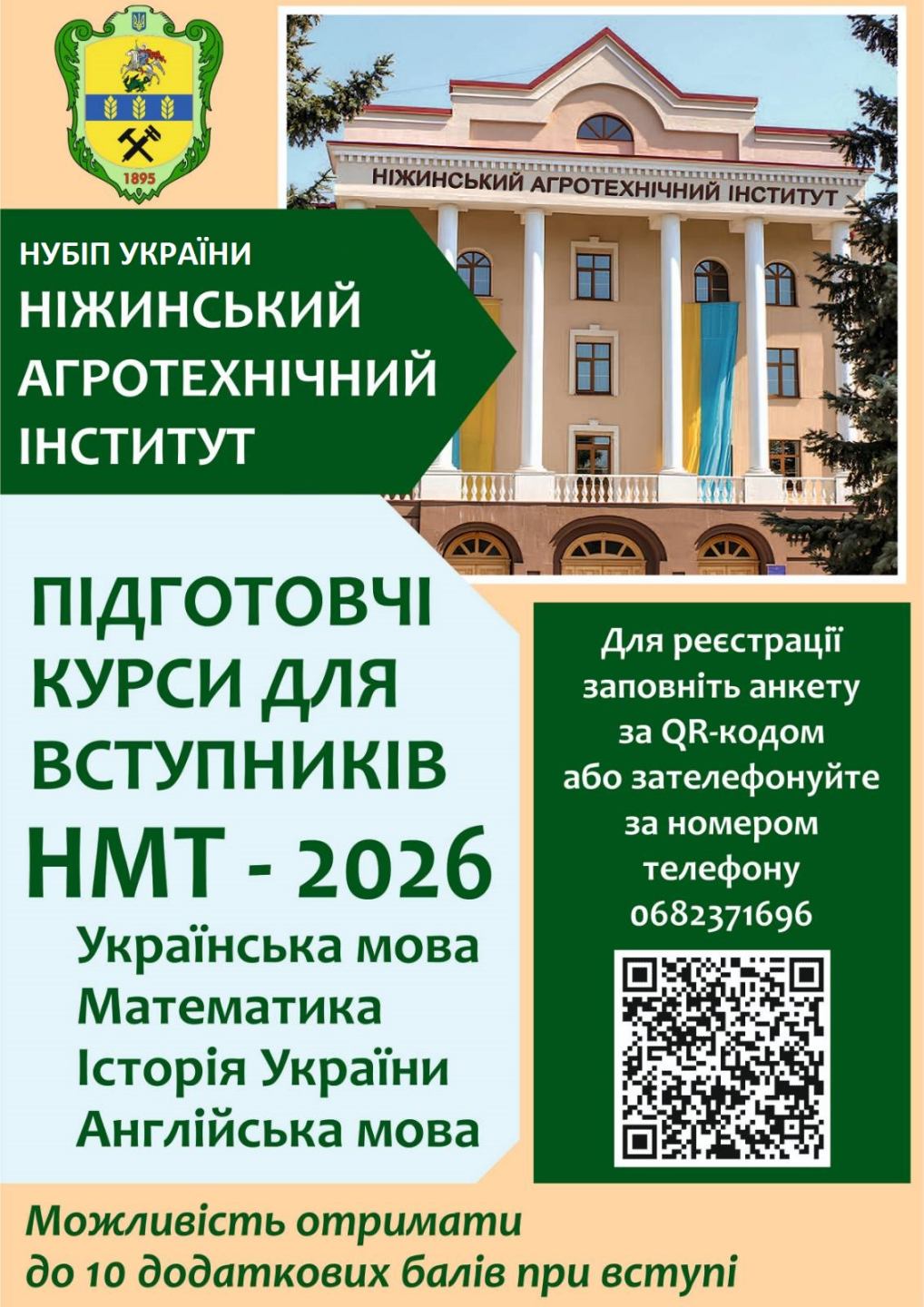 Ніжинський агротехнічний інститут запрошує тебе на ексклюзивні підготовчі курси до НМТ! Ми не просто готуємо до тесту, ми готуємо до вступу у професію майбутнього.