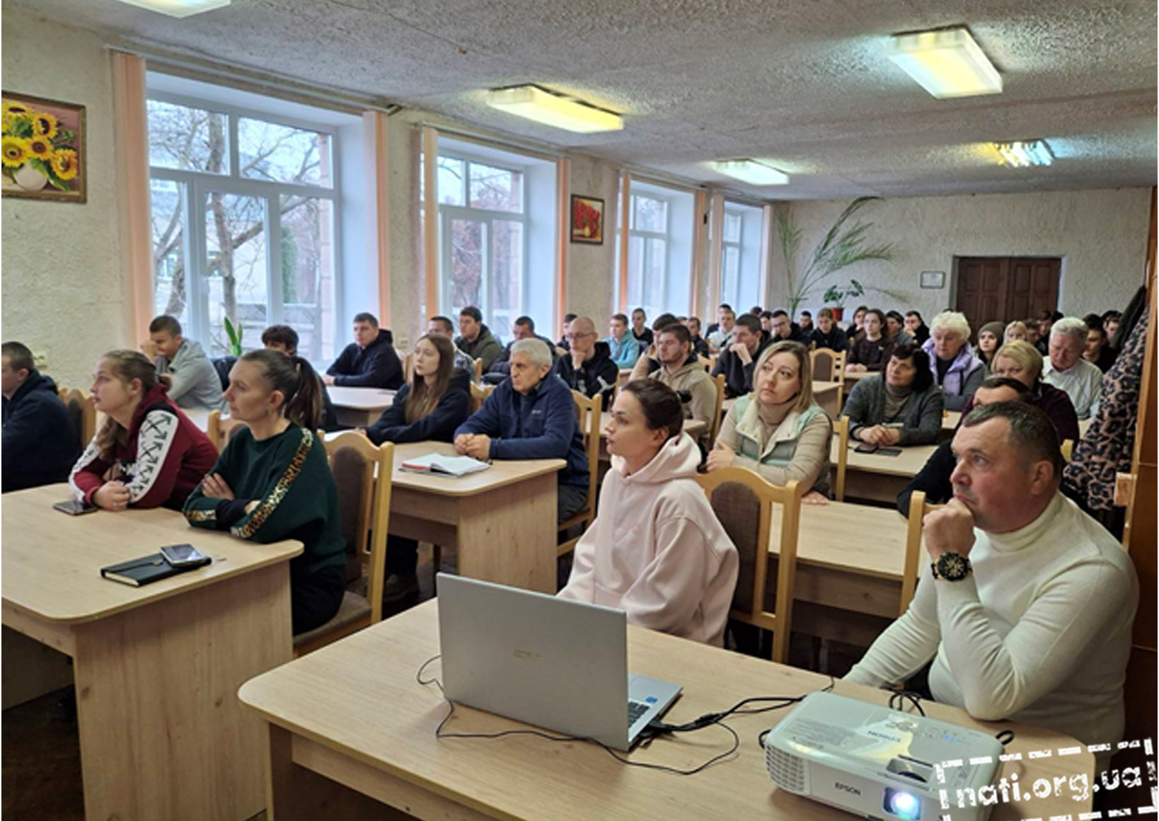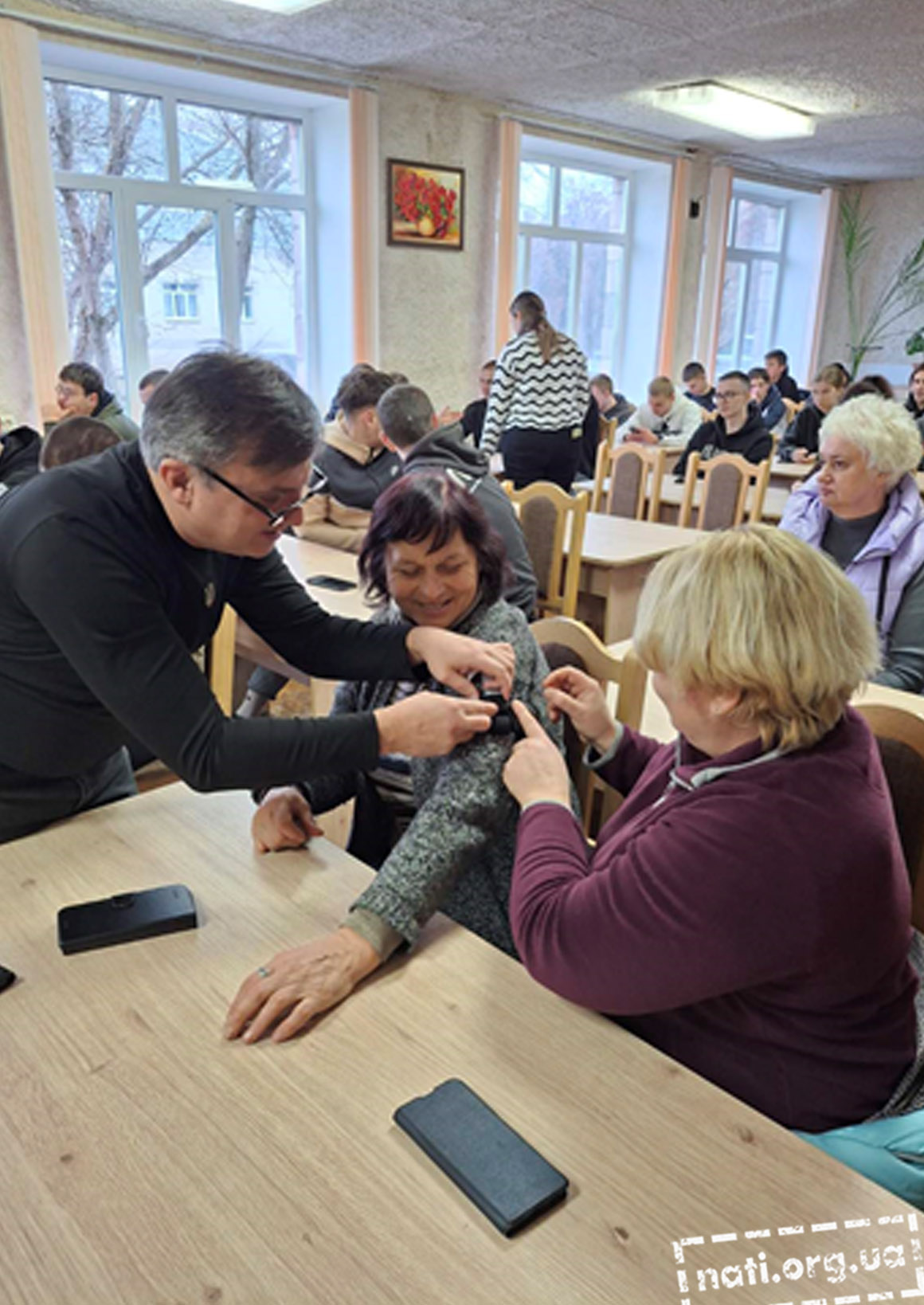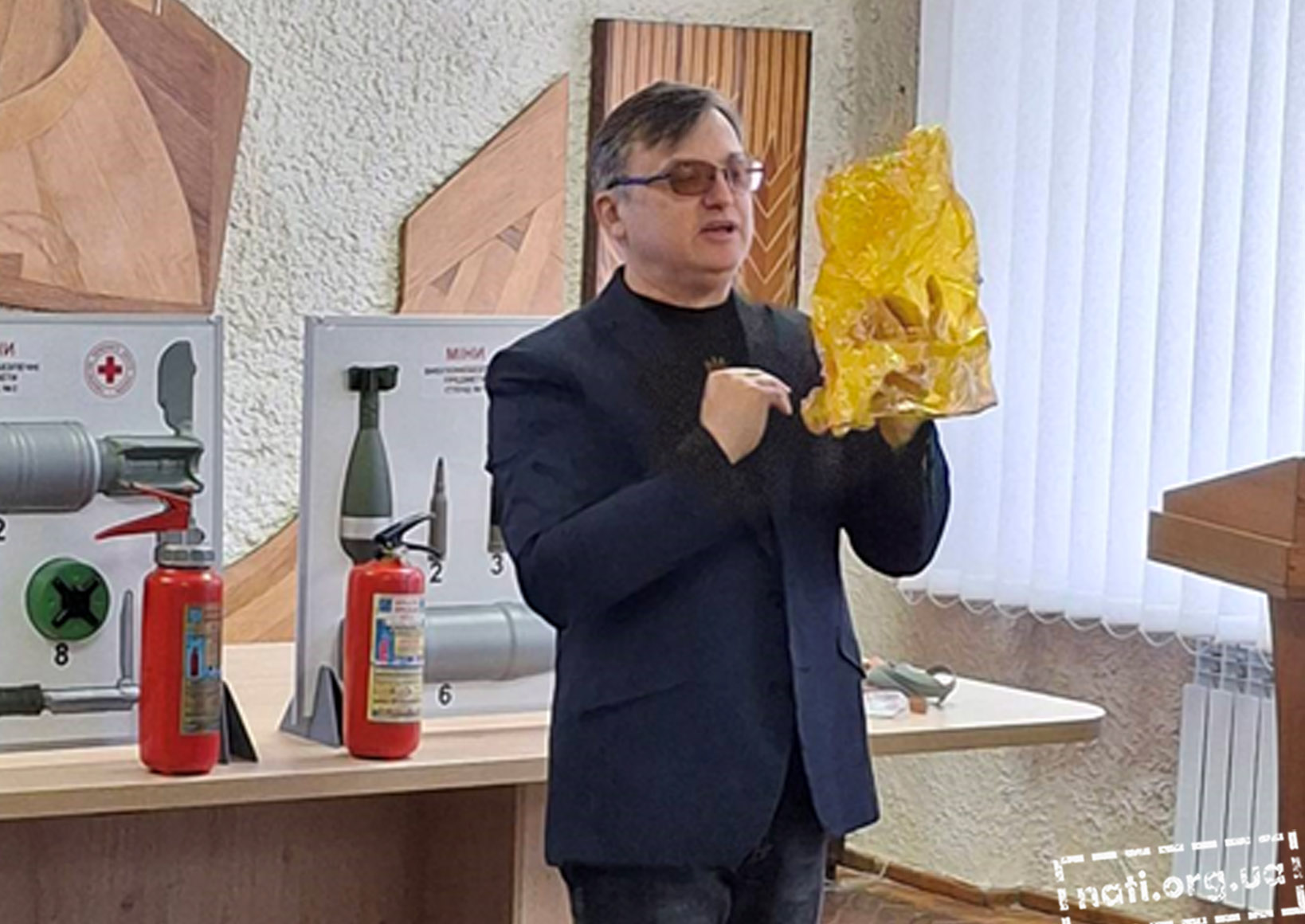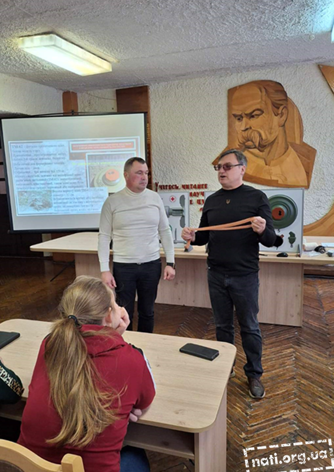 Наша зустріч розпочалася із розгляду питань, які є важливими в умовах воєнного стану, насамперед це знання щодо уникнення ураження вибухонебезпечними предметами та щодо поведінки в надзвичайних ситуаціях. Присутні ознайомилися із конкретними вибухонебезпечними предметами (мінами, гранатами) та своїми діями у разі їх виявлення.