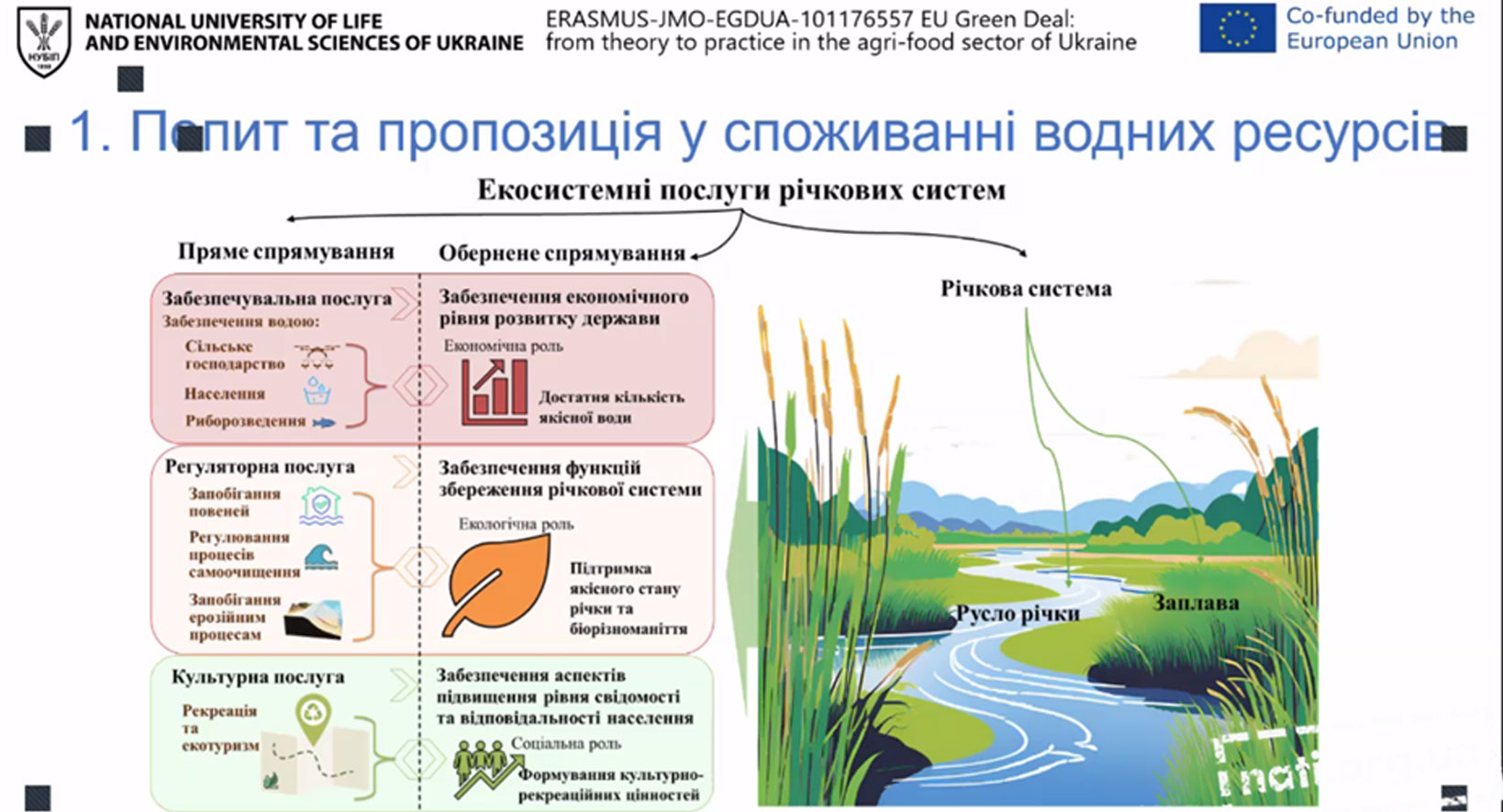 Програма стажування охоплювала комплекс актуальних питань економічної, екологічної та правової трансформації агросектору України з урахуванням політик Європейського Союзу. Значну увагу було приділено екологічним аспектам агровиробництва, зокрема збереженню та відновленню ґрунтів, раціональному використанню водних ресурсів, збереженню біорізноманіття, а також оцінці кліматичних ризиків і розробці адаптаційних стратегій.