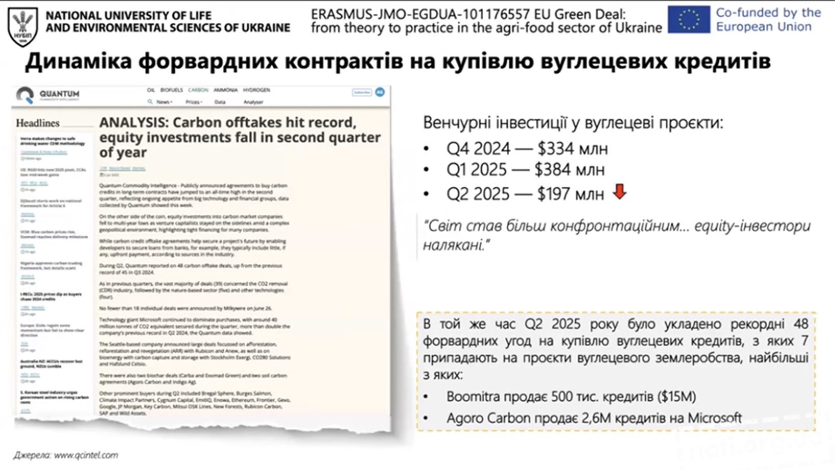 Окремий тематичний блок був присвячений вуглецевому землеробству як перспективному напряму підвищення кліматичної нейтральності та конкурентоспроможності агропродовольчого сектору. Учасники ознайомилися з архітектурою вуглецевих ринків, стандартами сертифікації, практиками розробки вуглецевих проєктів в агросекторі, а також інструментами оцінки скорочення та накопичення викидів парникових газів.