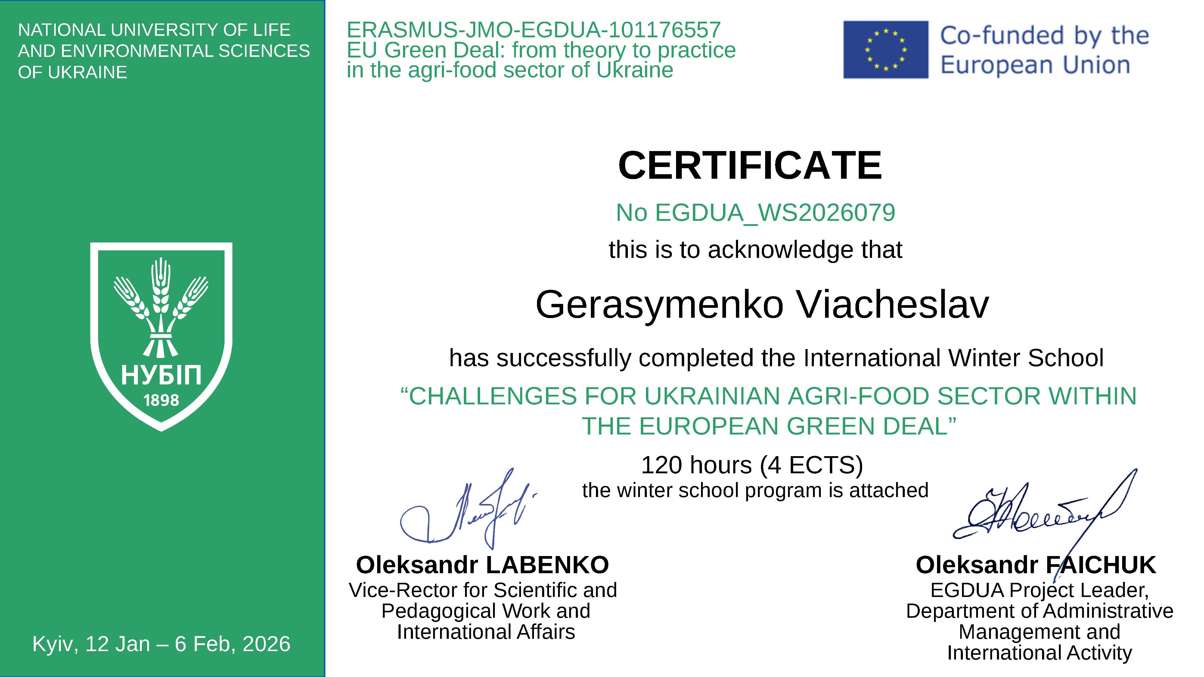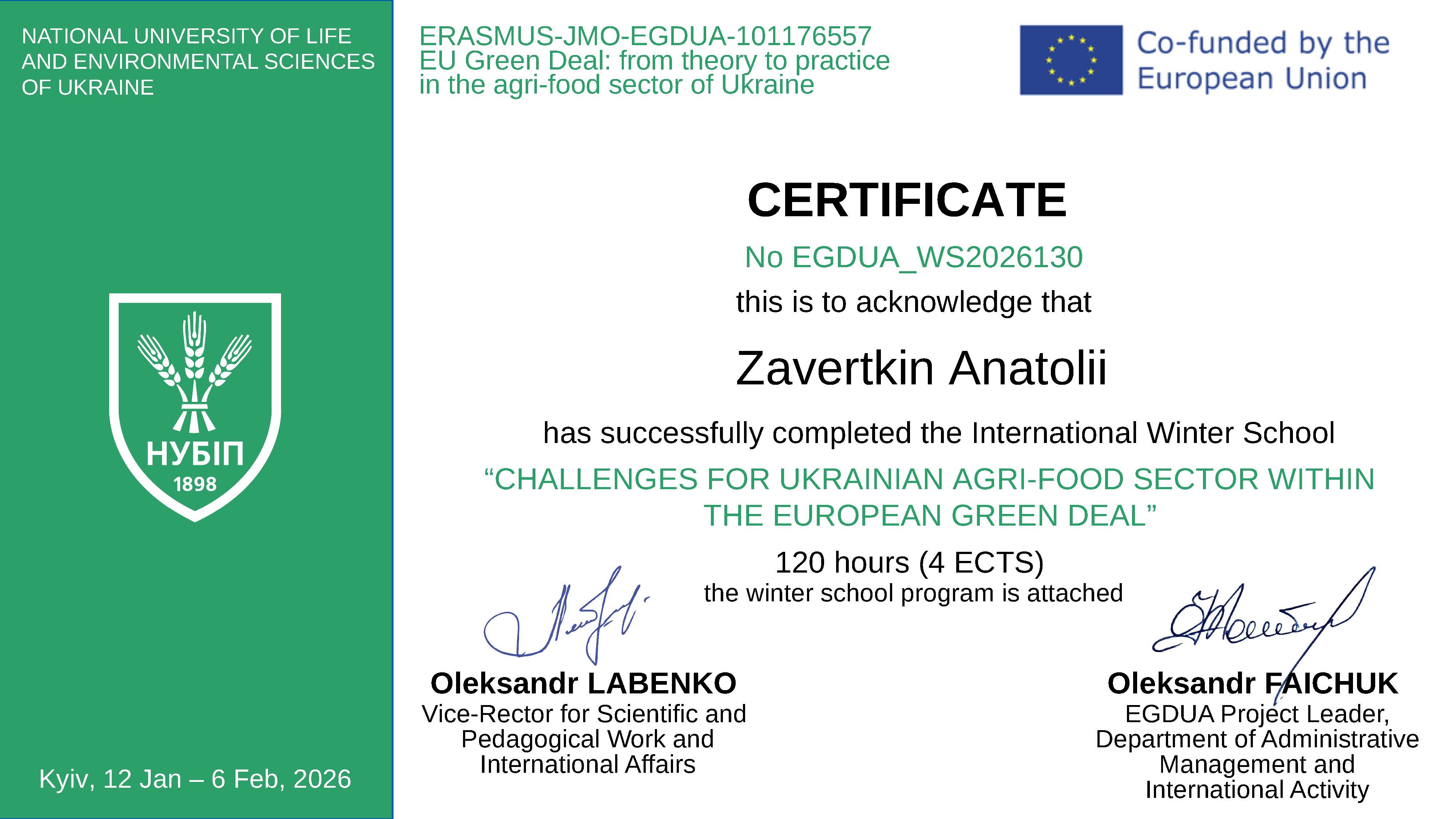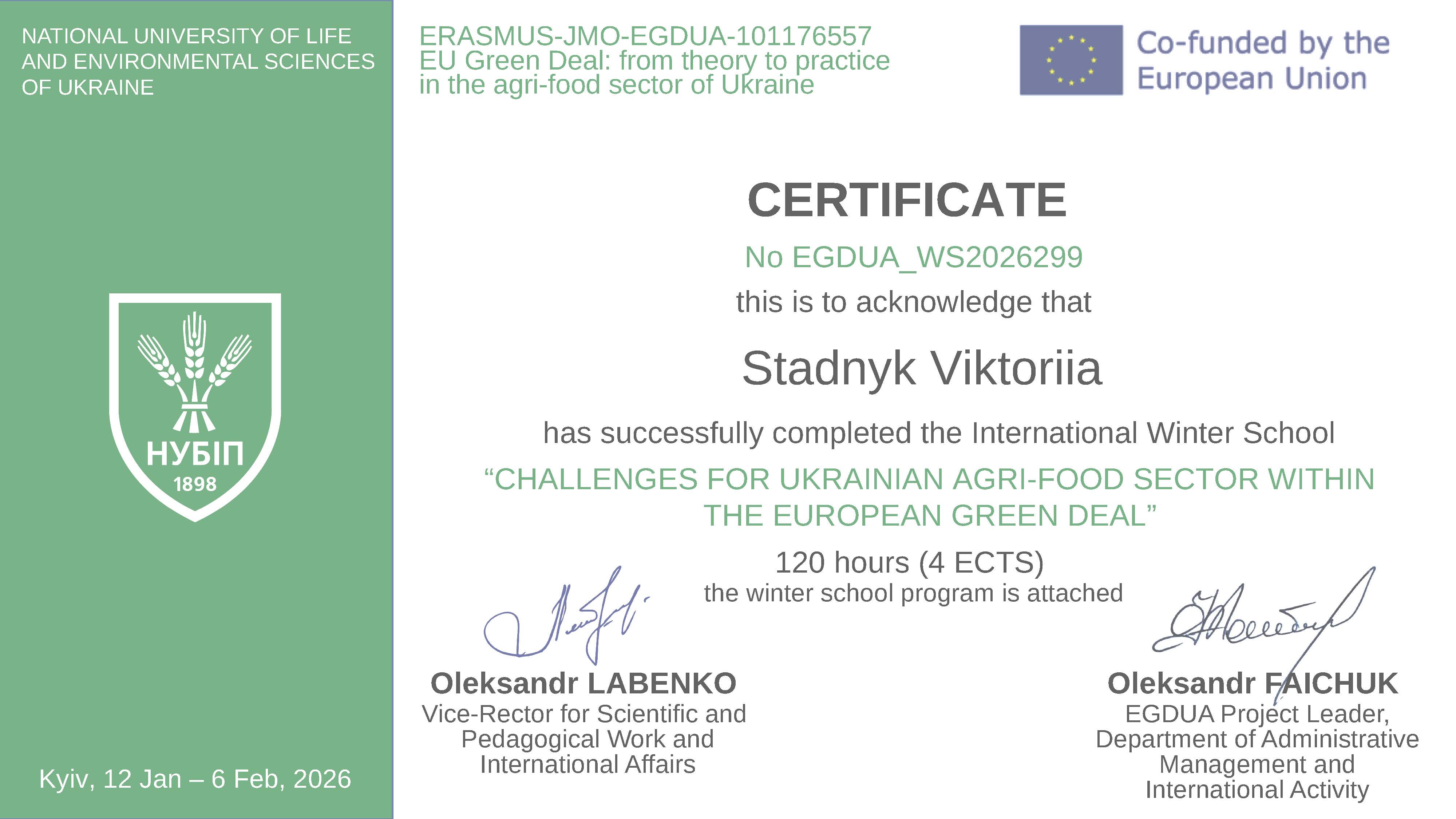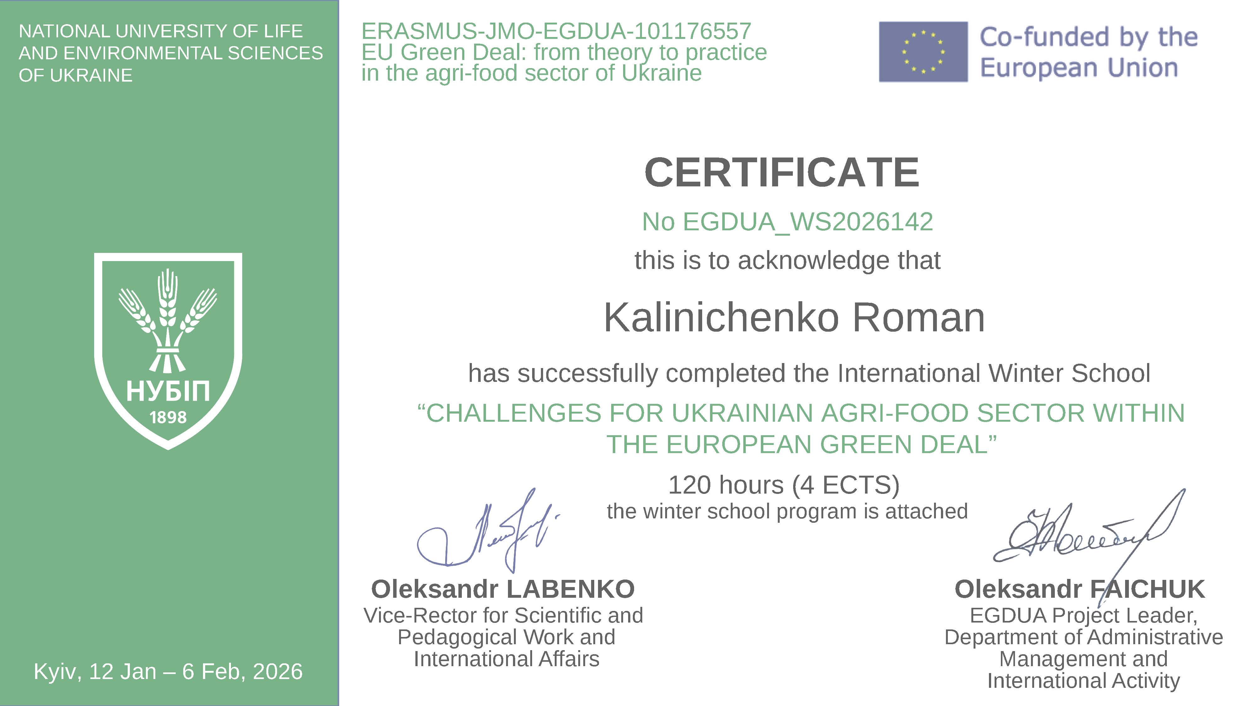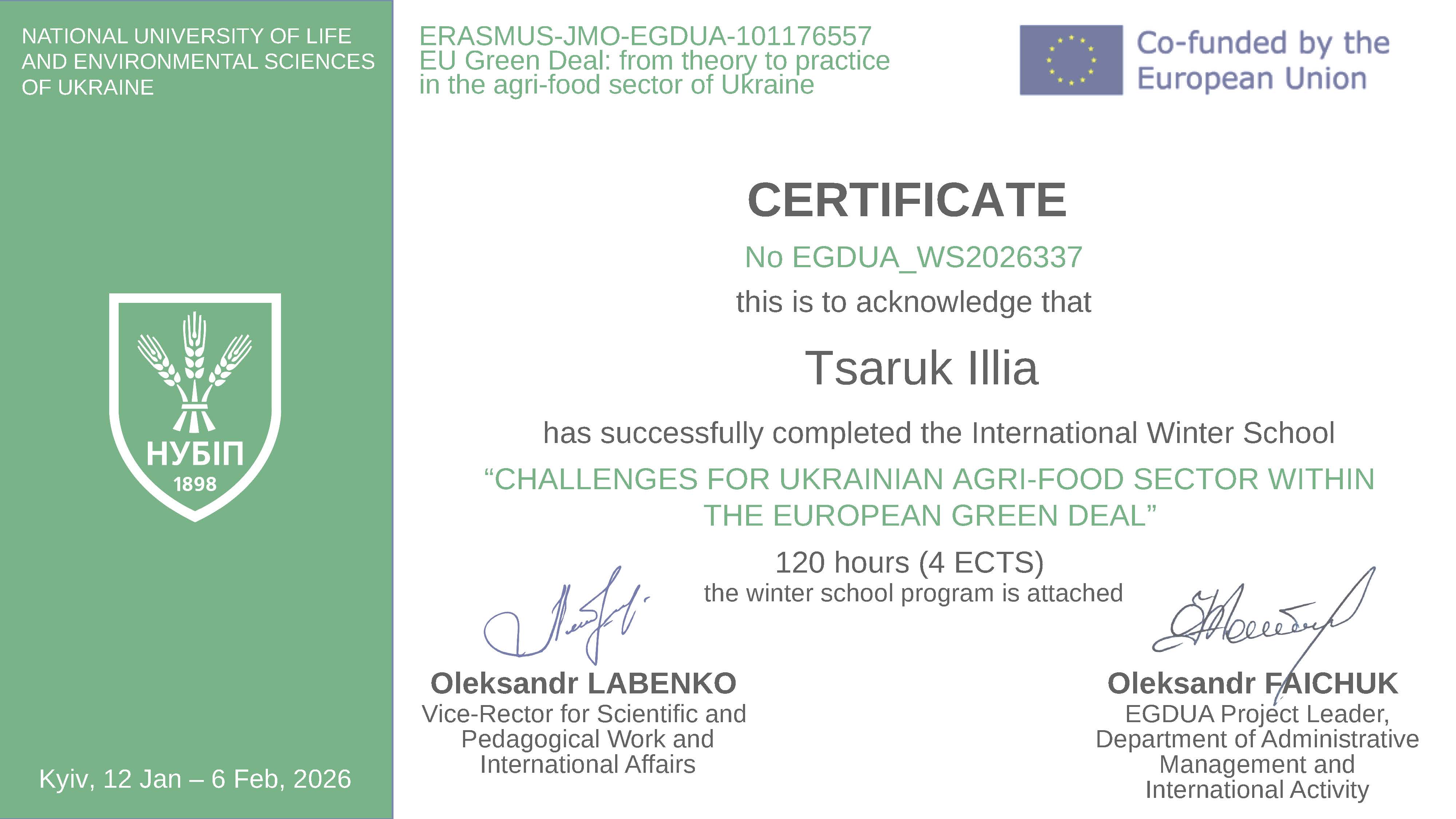 Участь у зимовій школі стала важливим елементом професійного стажування та підвищення кваліфікації науково-педагогічних працівників, спрямованим на поглиблення знань у сфері сталого розвитку агропродовольчого сектору, європейської інтеграції та імплементації вимог Європейського зеленого курсу.