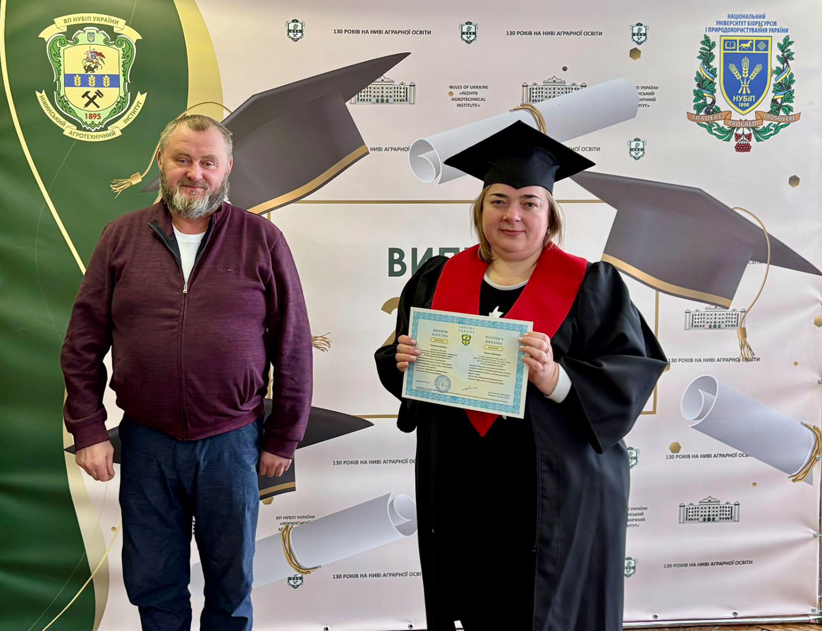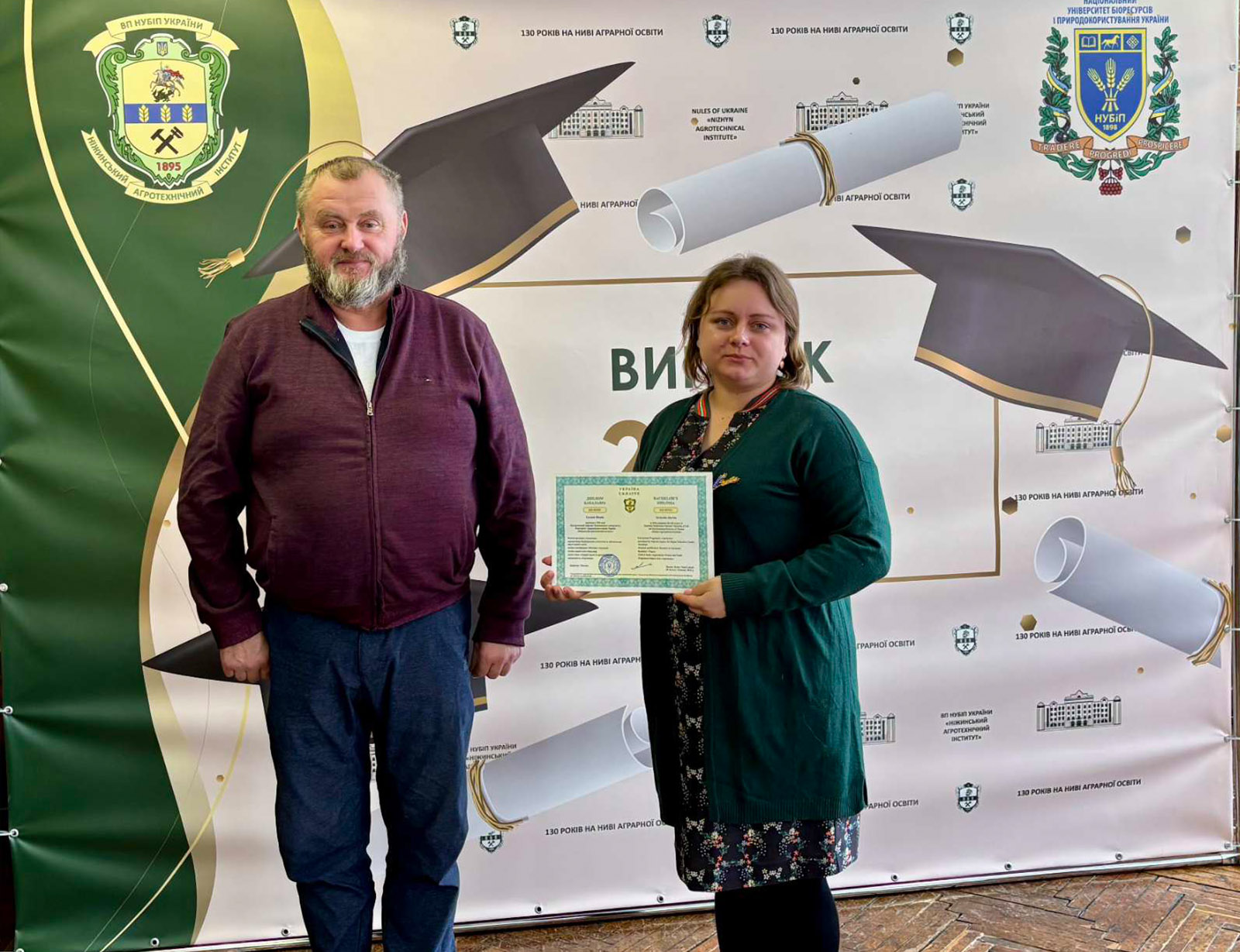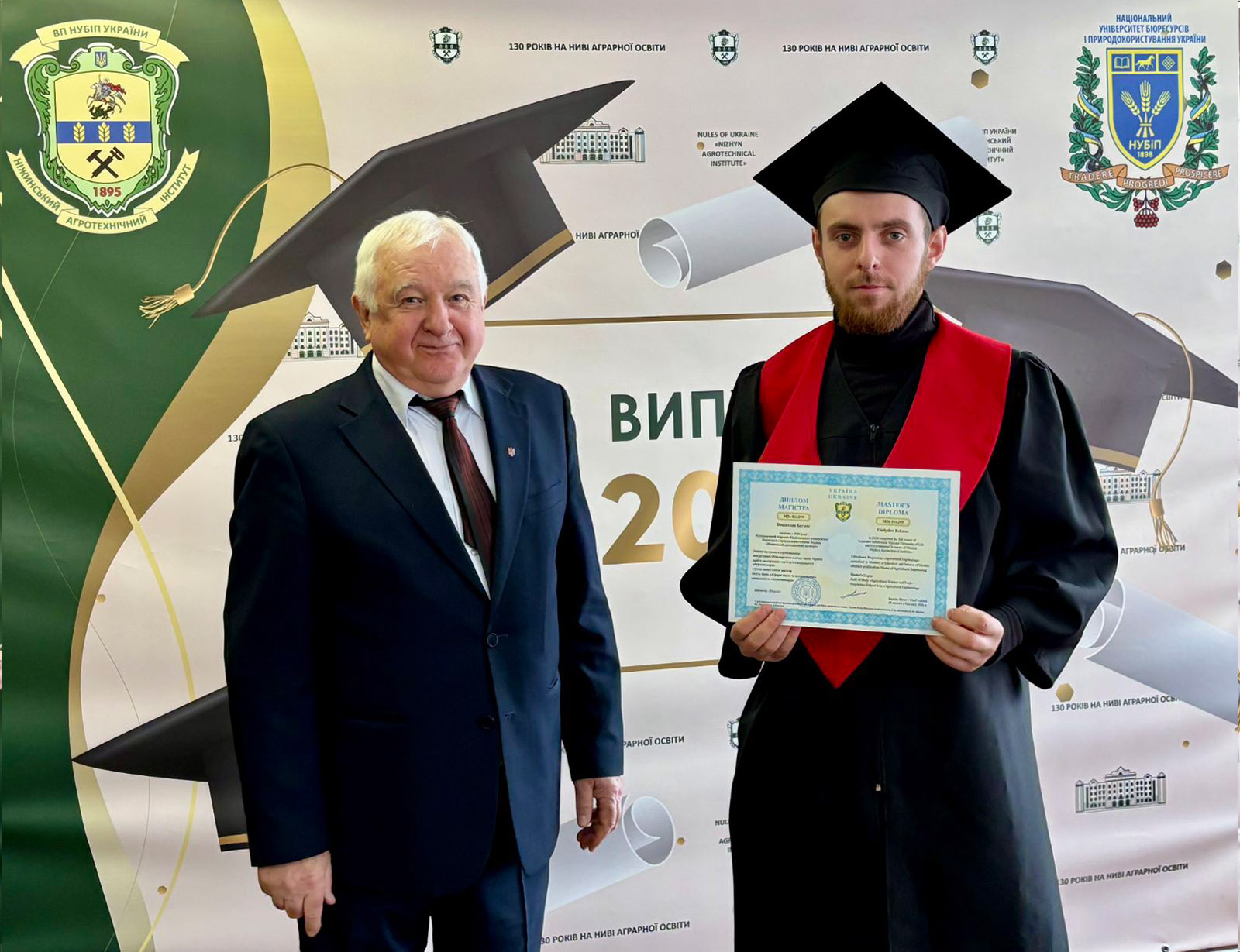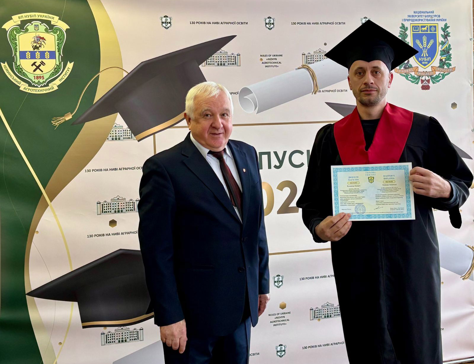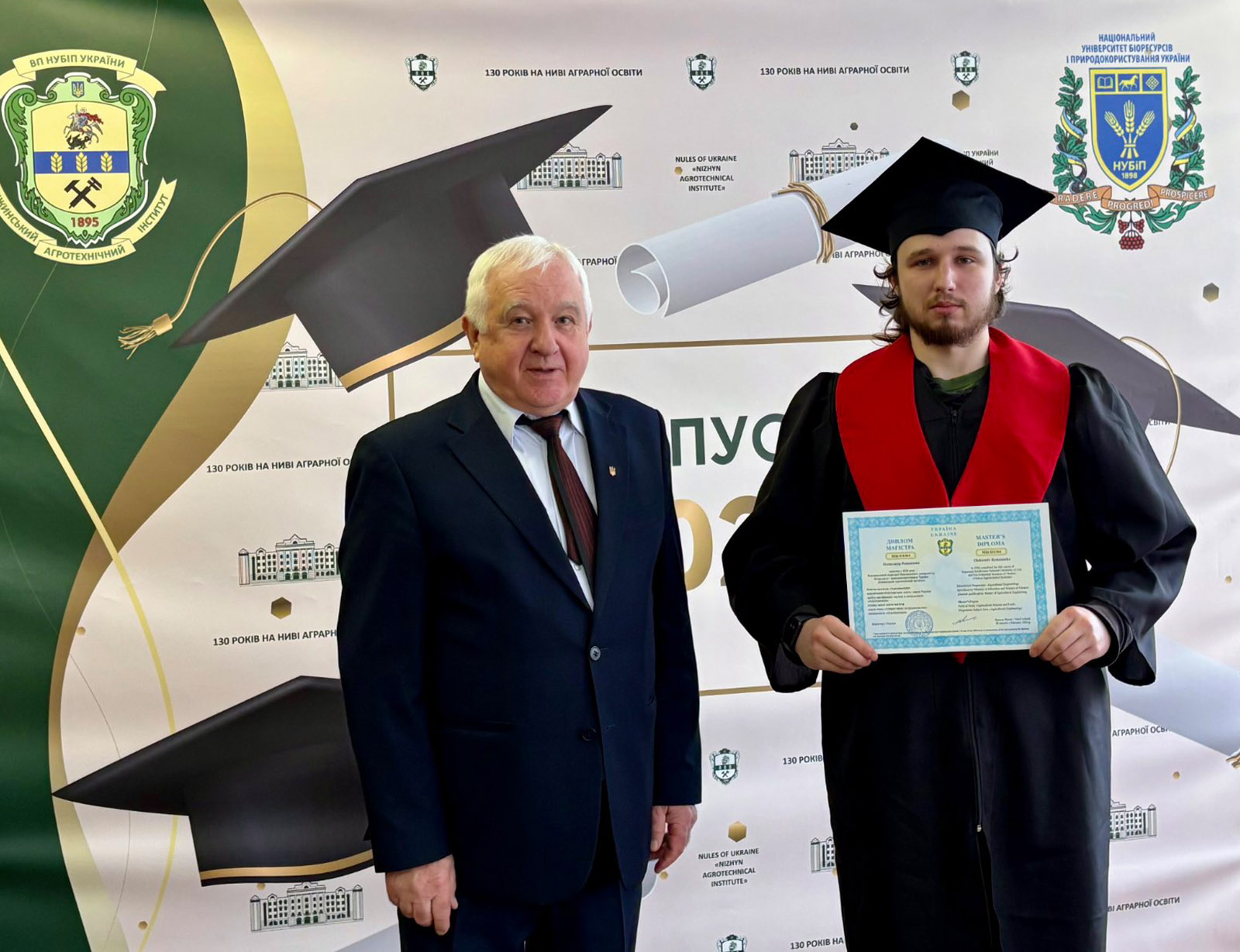 Зі словами щирих вітань до випускників звернувся директор ПСП «Пісківське», кандидат економічних наук, депутат Чернігівської обласної ради Валерій Колоша. У своєму виступі він побажав випускникам залишатися й працювати в Україні, реалізовувати свій потенціал, розвивати економіку рідного краю і щоб у їхньому житті та кар’єрі все складалося якнайкраще. Він підкреслив, що сьогодні країна особливо потребує освічених, відповідальних і ініціативних спеціалістів, здатних зміцнювати економіку та розбудовувати майбутнє держави. Після вітальних слів Валерій Петрович вручив дипломи магістрам і бакалаврам спеціальності «Облік і оподаткування» та бакалаврам спеціальності «Агрономія».