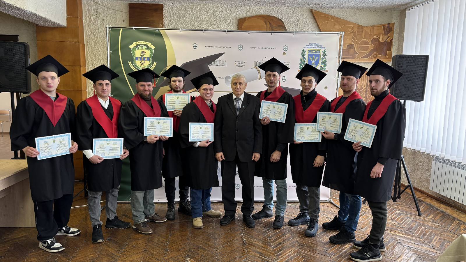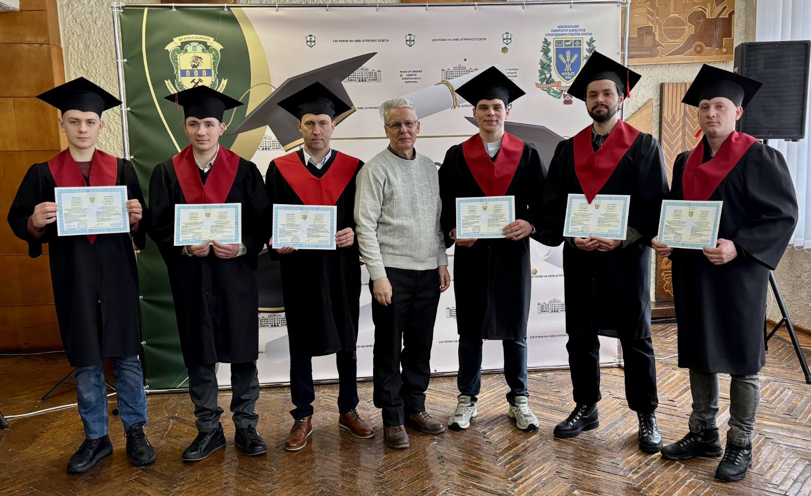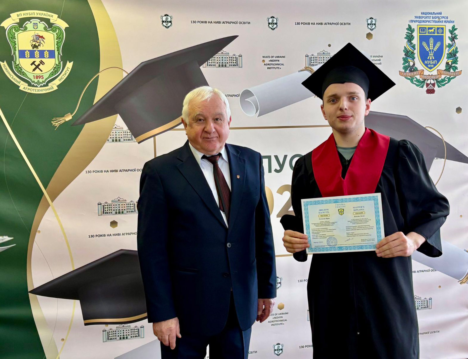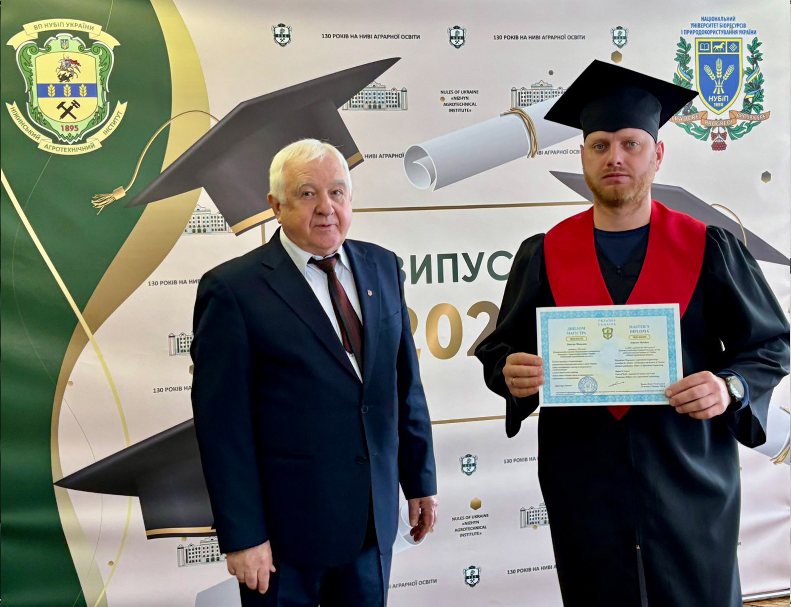 Церемонія розпочалася з вітального слова директора інституту Василя Лукача, який привітав випускників із завершенням важливого етапу в їхньому житті та підкреслив, що ступінь магістра – це не лише набуті знання, а й результат наполегливої праці, професійного зростання та нових можливостей, що відкриваються перед дипломованими фахівцями, за плечима багатьох з яких вже є життєвий і професійний досвід. Далі Василь Степанович вручив дипломи з відзнакою чотирьом кращим випускникам та дипломи магістрам спеціальностей «Агроінженерія» і «Електроенергетика, електротехніка та електромеханіка».
