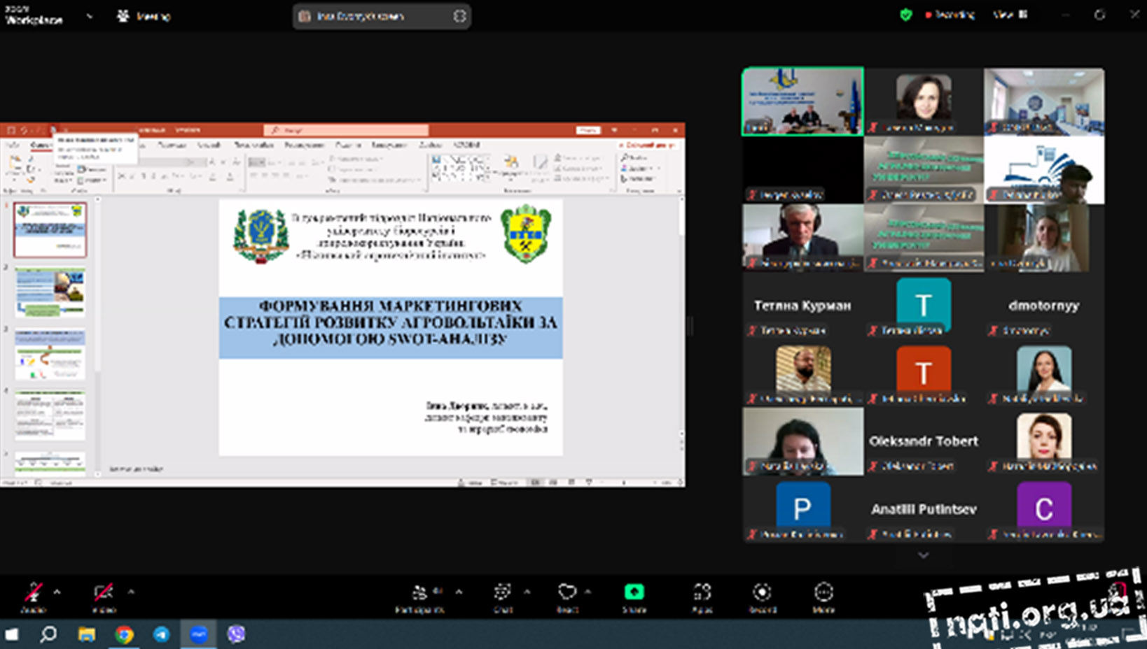 З темою доповіді «Формування маркетингових стратегій розвитку агровольтаїки за допомогою SWOT-аналізу» на пленарному засіданні виступила доцент кафедри менеджменту та аграрної економіки Інна Дворник.