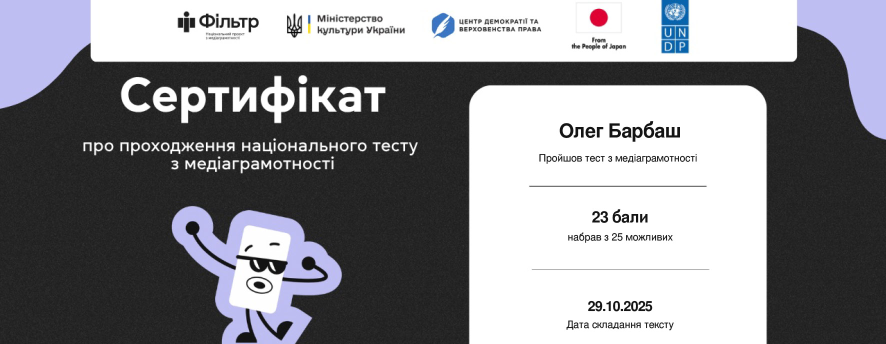 29 жовтня відбувся щорічний Національний тест із медіаграмотності, що проводиться вже вчетверте за ініціативи Національного проєкту «Фільтр» Міністерства культури та стратегічних комунікацій.