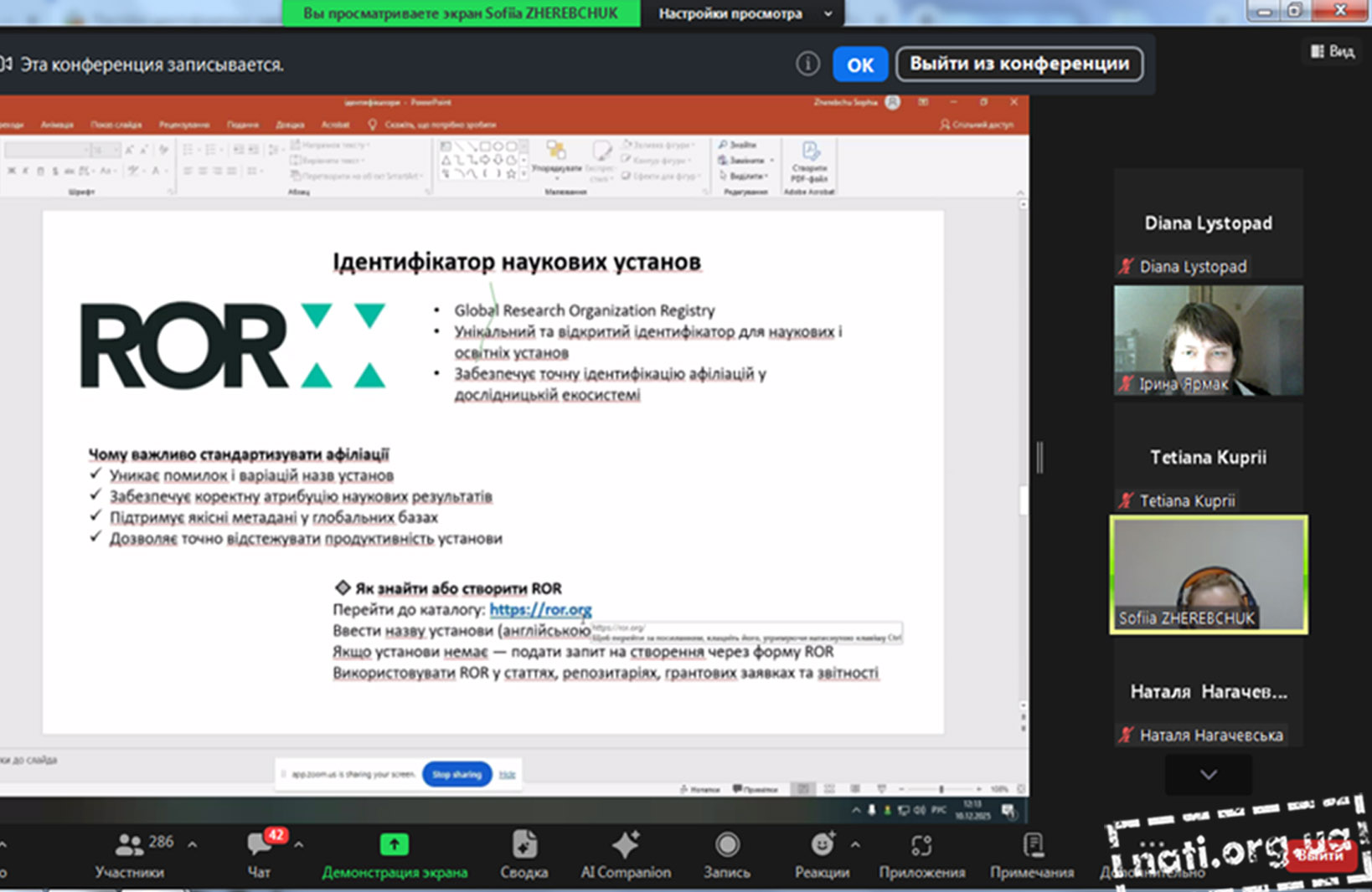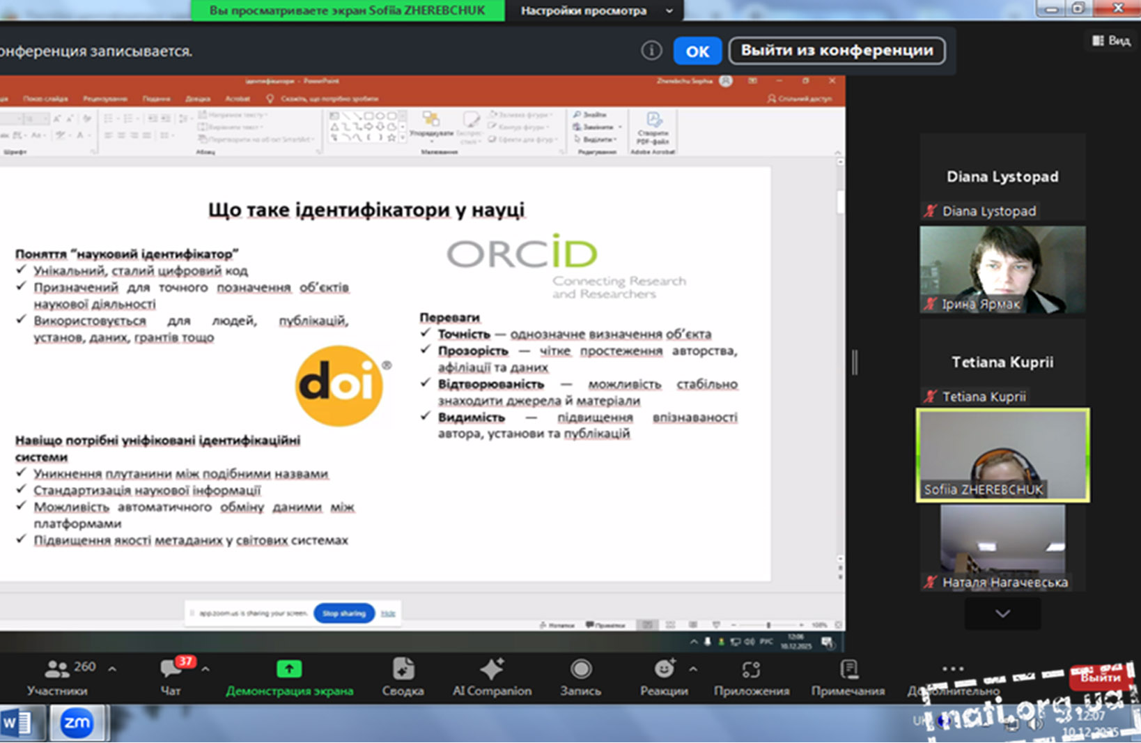 10 грудня 2025 року наші фахівці долучилися до вебінару «Постійні ідентифікатори: навігація в глобальному науковому просторі».