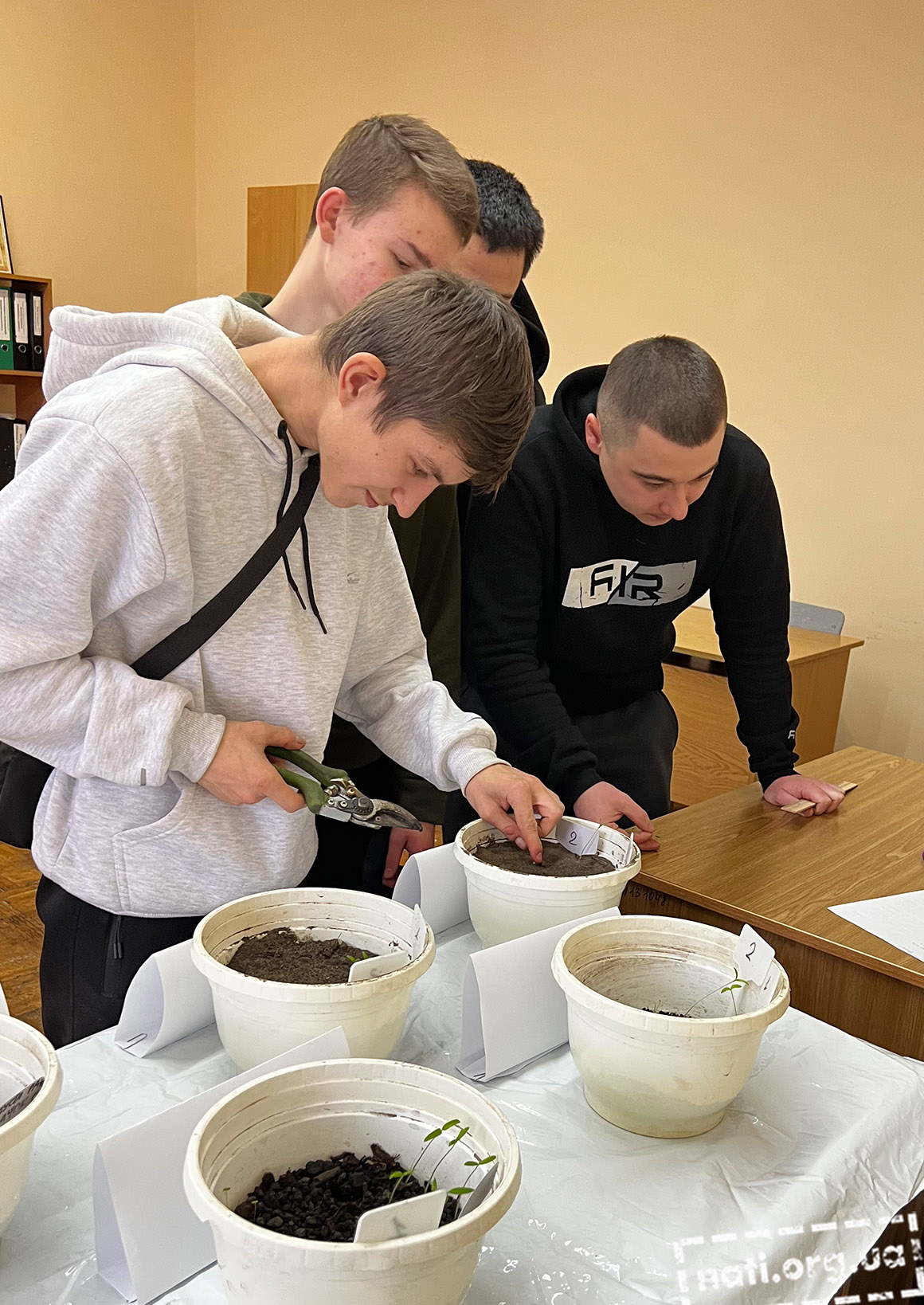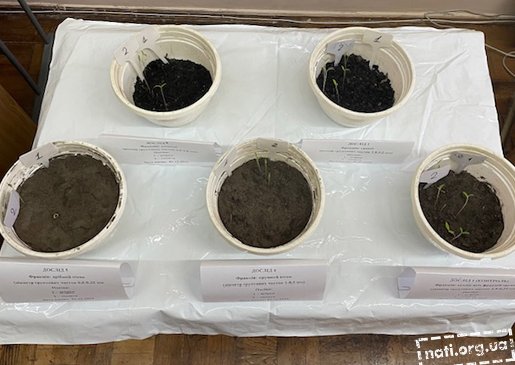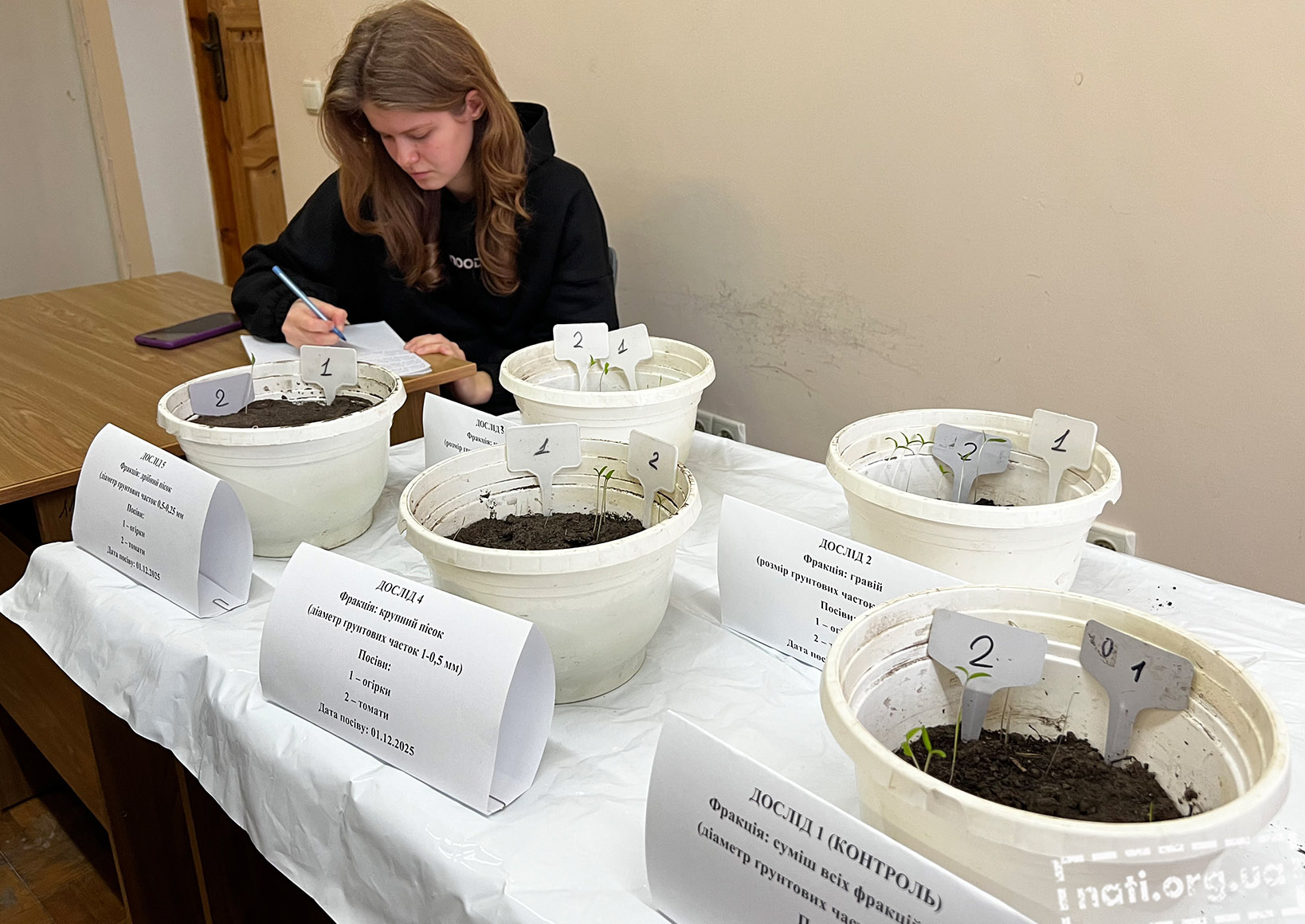 Дослідники спостерігали як різні фракції ґрунту (дрібний та крупний пісок, камінці, гравій) впливали на тривалість фази проростання насіння, дружність і розвиток сходів рослин, їх ботанічні властивості. Студенти визначали розміри надземної та підземної частин томатів, кількість листків та коренів.