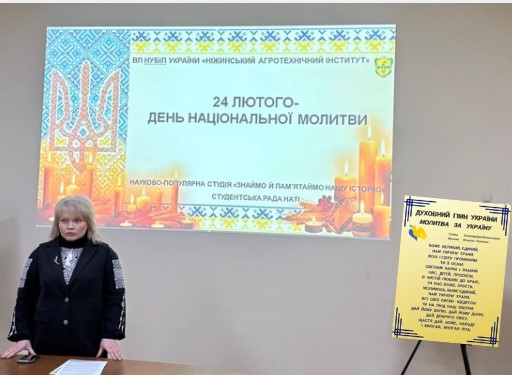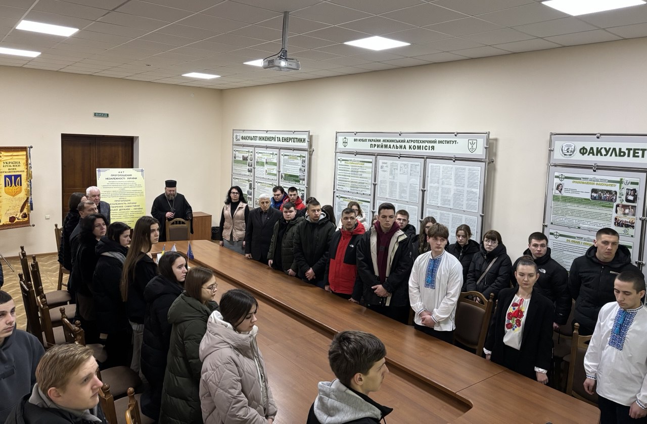 Цього дня в стінах Ніжинського агротехнічного інституту спільна молитва об’єднала студентів, викладачів і працівників. Зустріч розпочалася хвилиною мовчання та виконанням духовного гімну «Молитва за Україну» (художній керівник — Наталія Панас; студенти — Василь Долинний, Богдан Помаз)