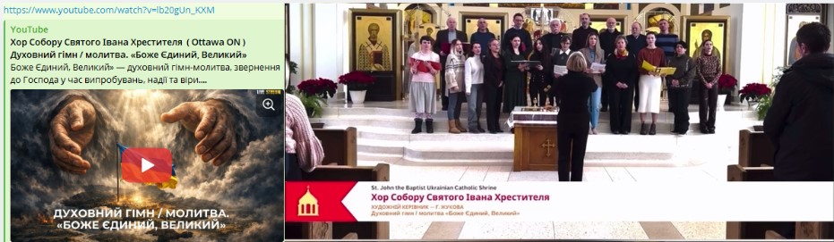 За сприяння помічника настоятеля, отця Серафима В. Григорука, на сторінці храму було розміщено виконання духовного гімну як знак підтримки України. У дописі зазначено, що ця молитва звучить як тихе прохання і водночас як сильне свідчення незламності духу, любові до України та довіри до Божого провидіння. Виконує твір хор Собору Святого Івана Хрестителя (художній керівник — Галина Жукова)