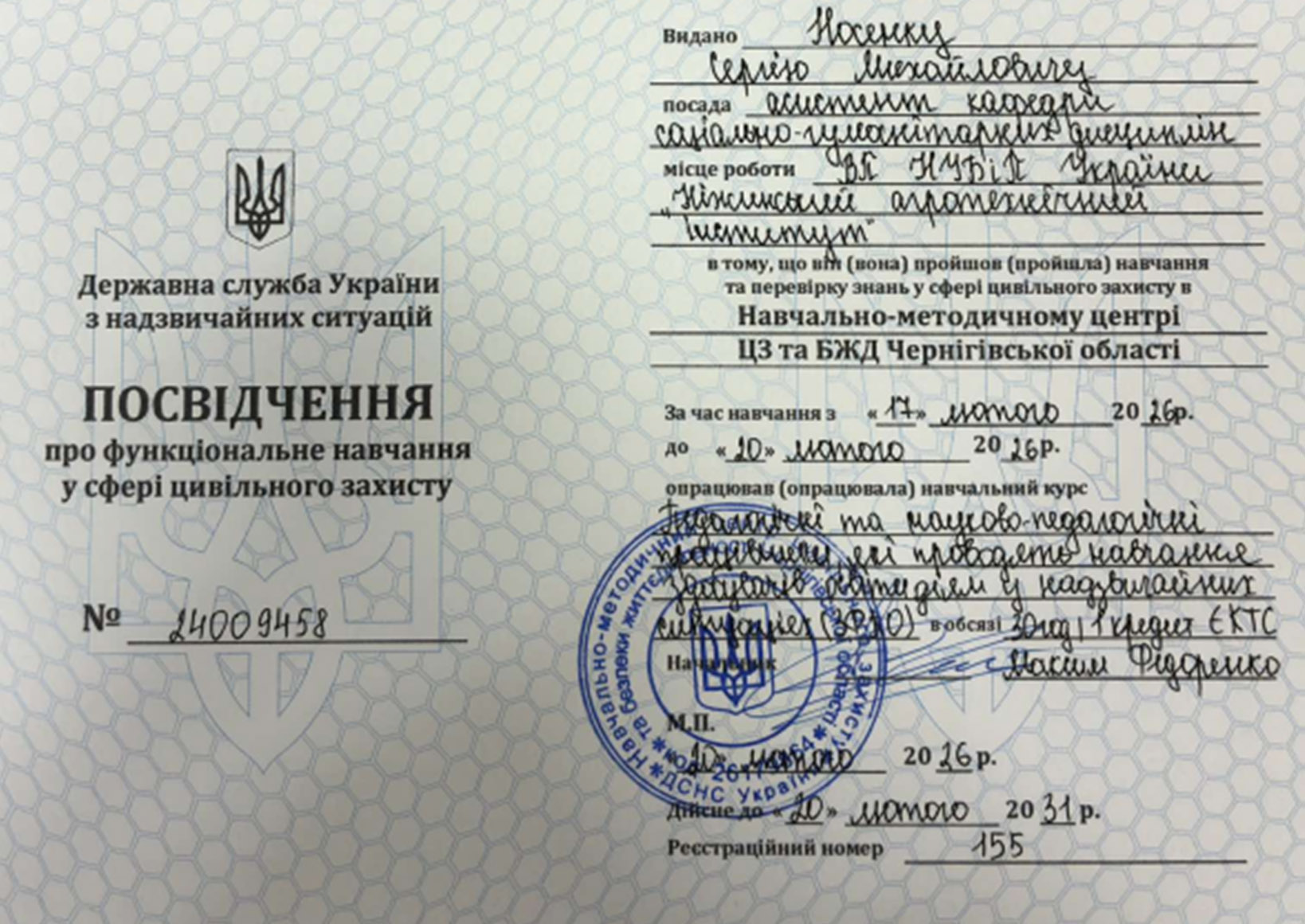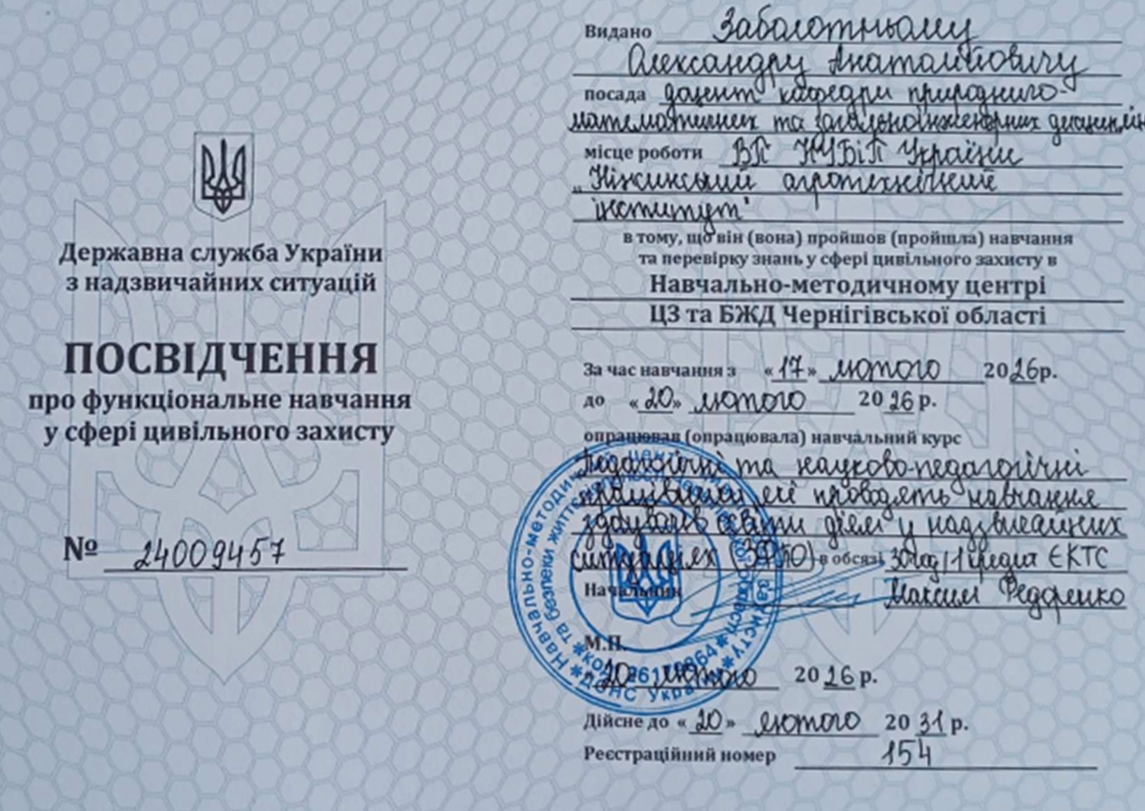 17-20 лютого 2026 року викладачі інституту на базі Навчально-методичного центру цивільного захисту та безпеки життєдіяльності Чернігівської області здійснили навчання з курсу для педагогічних та науково-педагогічних  працівників.