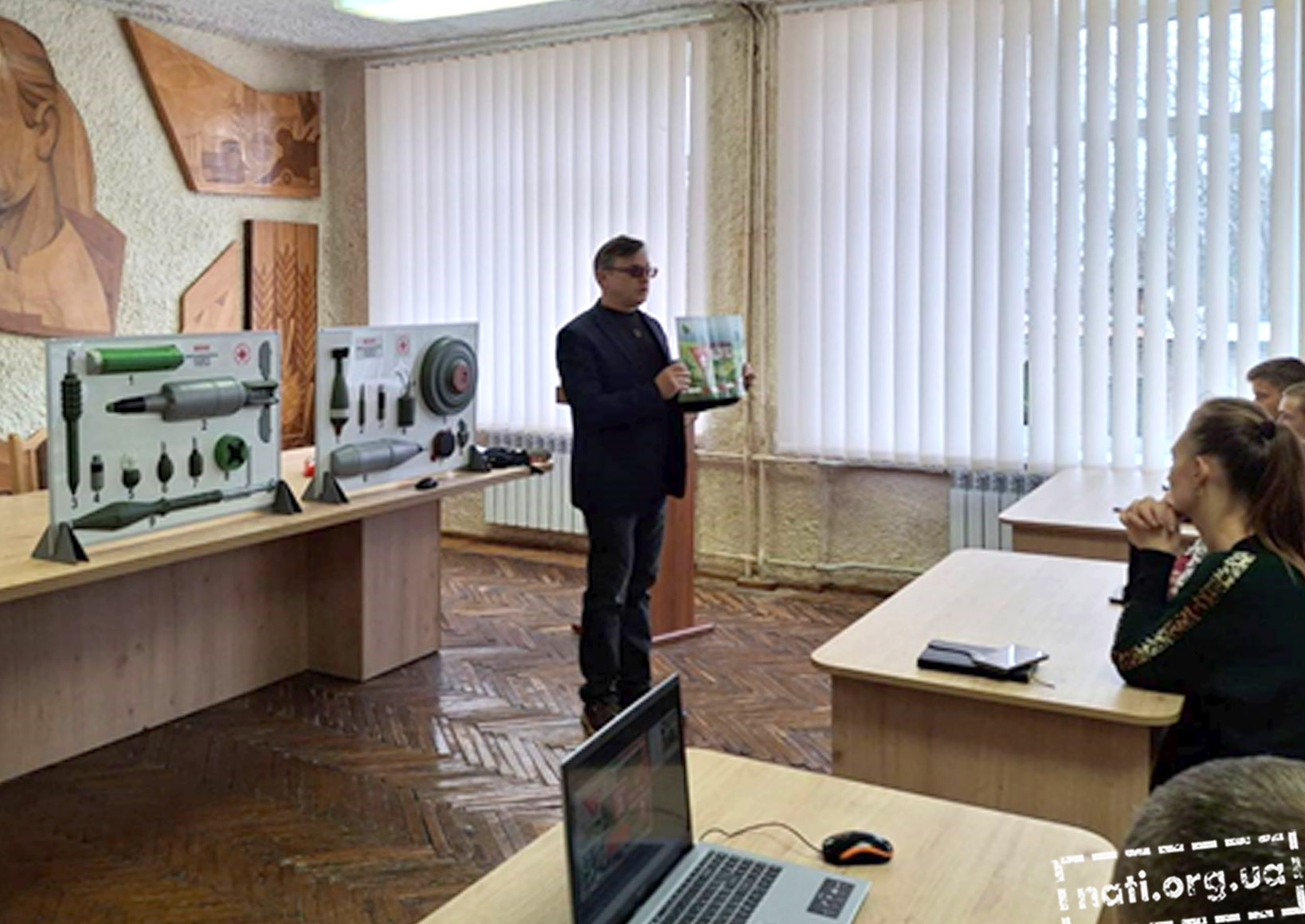 Наша зустріч розпочалася із розгляду питань, які є важливими в умовах воєнного стану, насамперед це знання щодо уникнення ураження вибухонебезпечними предметами та щодо поведінки в надзвичайних ситуаціях. Присутні ознайомилися із конкретними вибухонебезпечними предметами (мінами, гранатами) та своїми діями у разі їх виявлення.