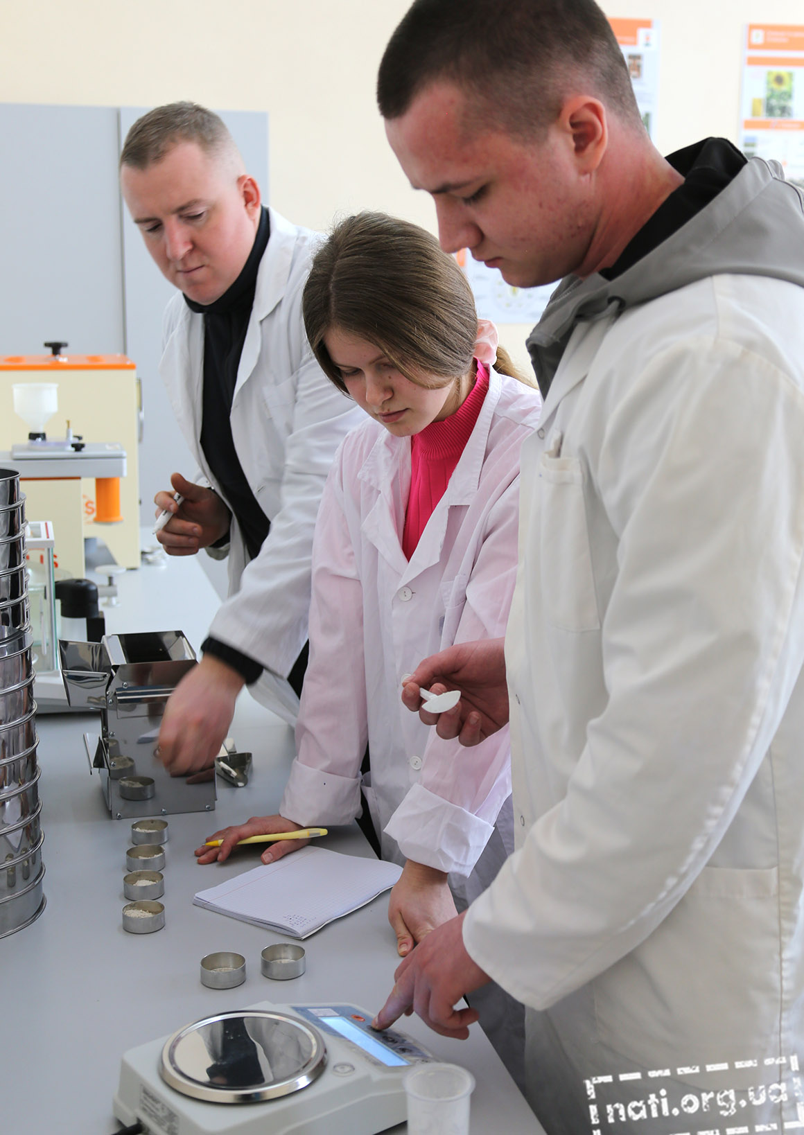 Практичні заняття організовані у форматі повноцінної лабораторної роботи, де кожен студент має можливість особисто працювати з приладами, виконувати вимірювання та аналізувати отримані результати. Застосування сучасного обладнання дозволяє проводити дослідження з високою точністю та оперативністю, що максимально наближує навчальний процес до реальних виробничих умов. Студенти опановують методики визначення основних показників якості продукції рослинництва, зокрема вологості, вмісту домішок, поживної цінності, а також ознак ураження шкідниками і хворобами.