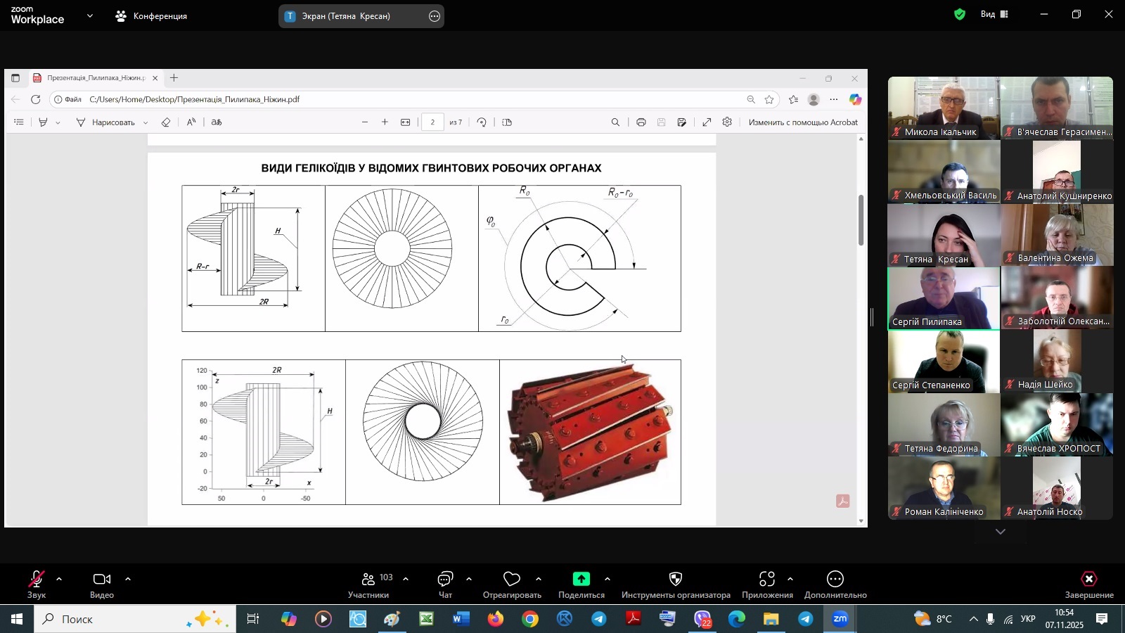Сергій Пилипака, д.т.н., професор, завідувач кафедри нарисної геометрії, комп'ютерної графіки та дизайну НУБіП України у доповіді «Деякі прикладні задачі, які розв'язуються із застосуванням теорії поверхонь диференціальної геометрії» вказав на важливість застосування теорії поверхонь диференціальної геометрії для розв’язання прикладних задач у техніці. Він навів приклади практичного використання різних методів під час оптимізації форми об’єктів, побудови геометричних моделей і розв’язання варіаційних задач, що підтвердило тісний зв’язок між математичною теорією поверхонь та прикладними інженерними завданнями, що відкриває нові можливості для сучасних досліджень.