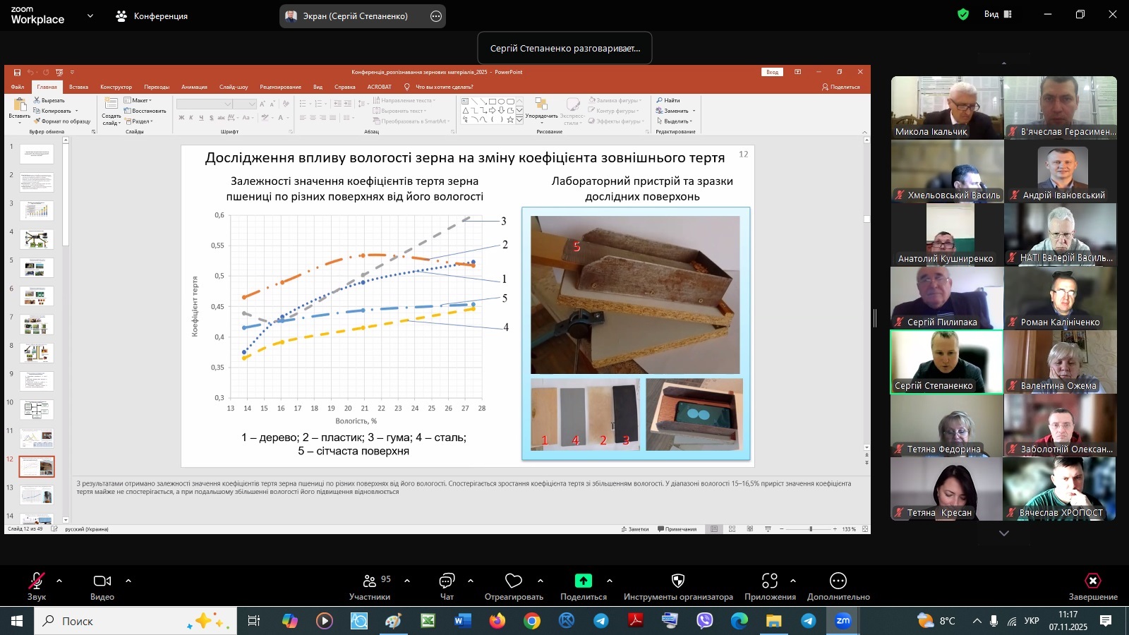 Сергій Степаненко, д.т.н., професор, старший науковий співробітник Інституту механіки та автоматики агропромислового виробництва НААН України у своїй доповіді «Перспективи використання технологій машинного зору для визначення якості зернових сумішей» розкрив питання використання технологій машинного зору у сфері контролю якості зернових сумішей, які мають значний потенціал. Вони забезпечують точність, швидкість і надійність оцінювання, що є ключовими факторами для підвищення конкурентоспроможності аграрних підприємств. У майбутньому очікується широке впровадження таких систем у лабораторіях, на елеваторах, зернопереробних заводах і навіть у фермерських господарствах.