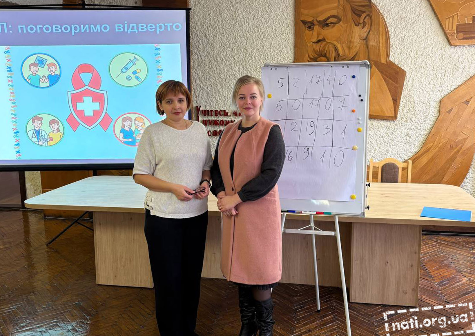Пані Наталія також провела інтерактивне опитування. Студентам запропонували відповісти: «Кому з ВІЛ-інфікованих варто допомогти?», поступово розширюючи інформацію про цих людей — їхній вік, життєві історії, сімейні обставини. Це дало змогу учасникам усвідомити, що ВІЛ може торкнутися будь-кого, і що жодна людина не повинна залишатися без підтримки чи співчуття.