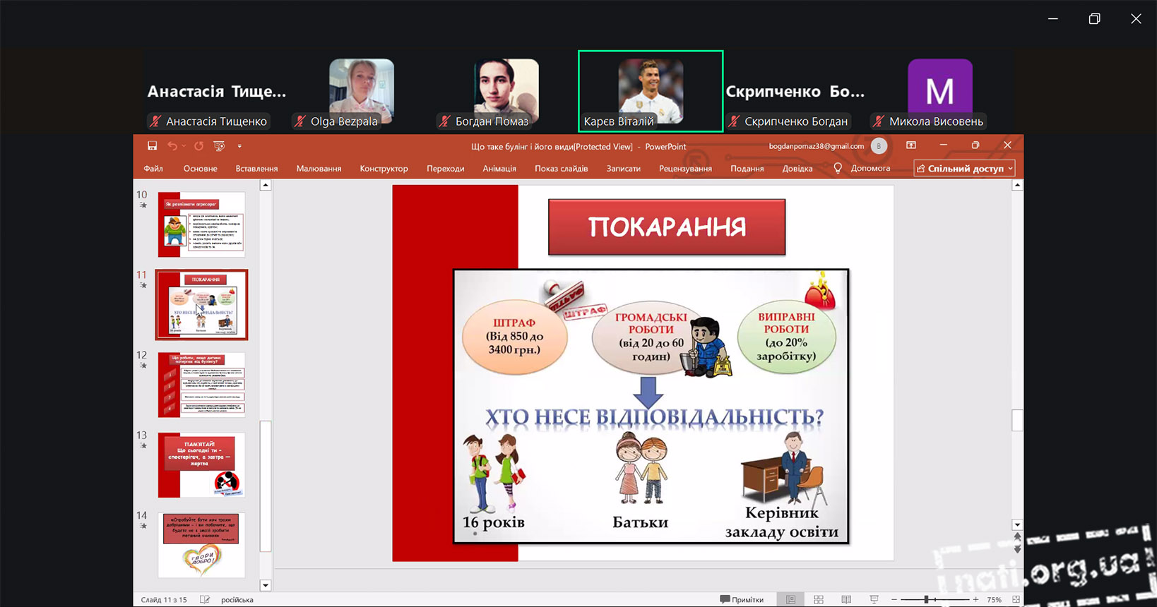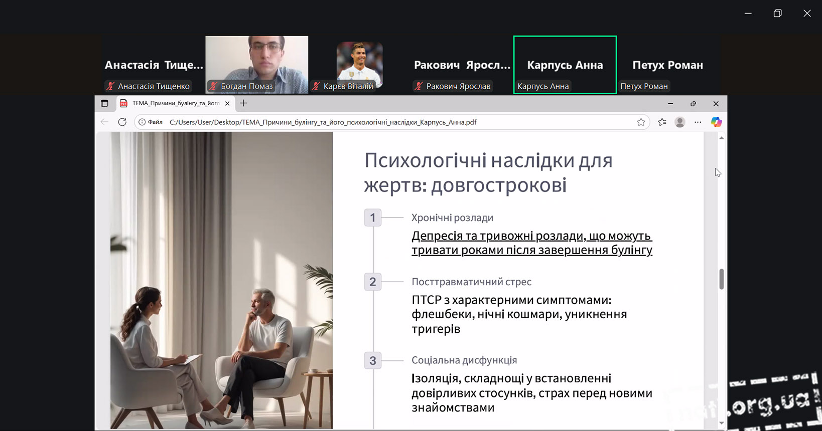 Студенти активно долучилися до заходу, презентуючи власні доповіді та презентації. Вони наводили приклади з життя, ділилися результатами досліджень та пропонували шляхи профілактики булінгу. Жвава дискусія засвідчила, що молодь небайдужа до проблеми та готова брати участь у її вирішенні.